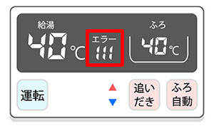 給湯器本体やリモコンに故障表示された場合は使用を中止する